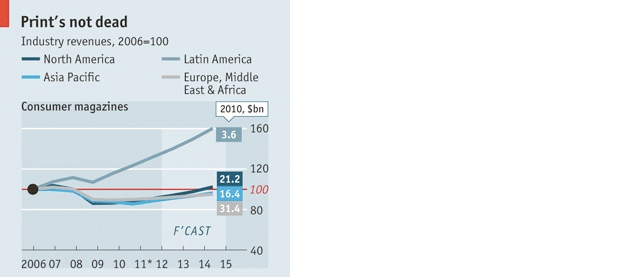 In the U.S., more print magazines were launched than closed in 2011, the same trend as evident in 2010. The Economist, a highly-respected British news magazine, writes about a new sense of optimism among publishers due to the increased readership of magazines. In fact, magazine audiences are growing faster than those for television or newspapers.